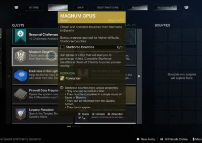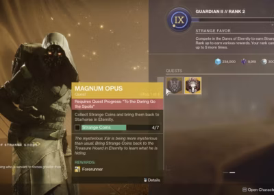 Player Journey is the main story quest for a release. It provides story beats through vendor performances (text and VO), character vignettes, and cinematics. Quest steps guide players through the release’s game loop, introduces and tutorializes new mechanics, and gates activities & sequences.