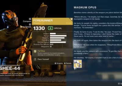 - Collaborated with feature owner to identify how to make earning this exotic weapon uniqu